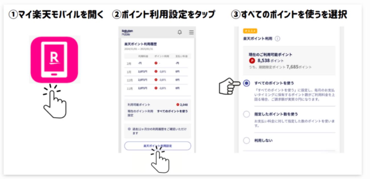 一度設定すると自動で楽天ポイントからスマホ代引き落としがされるので